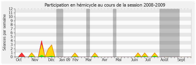 Présences enregistrées Participations Mots prononcés (x10000) Vacances parlementaires
