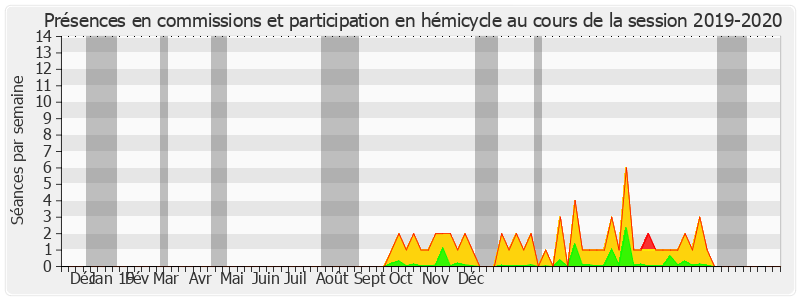 Présences enregistrées Participations Mots prononcés (x10000) Vacances parlementaires