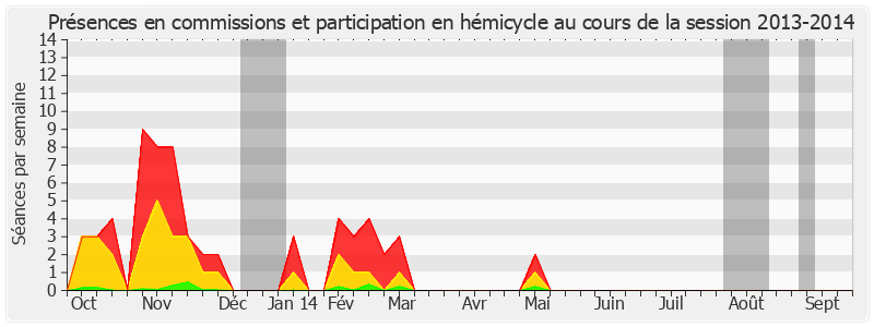 Présences enregistrées Participations Mots prononcés (x10000) Vacances parlementaires