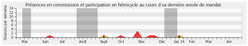 • 182 Semaines d'activité --  -- Nombre de semaines où le sénateur a été relevé présent en commission, -- a pris la parole (même brièvement) dans l'hémicycle : 182