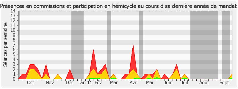 Présences enregistrées Participations Mots prononcés (x10000) Vacances parlementaires